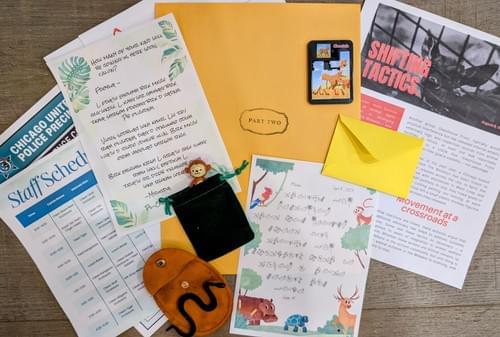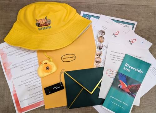 With over 20 physical items — including a yellow bucket hat, whistle, headband, keychain, toy camera, coaster, bingo card, bookmark, necklace, and more — you'll feel like you're combing through a treasure trove of evidence. You’ll decrypt secret messages, explore hidden websites, and solve everything from animal-fact ciphers to layered deduction puzzles.